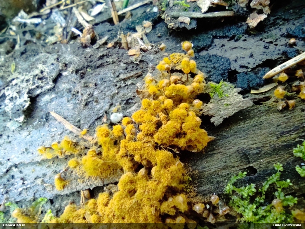 Šobrīd divas versijas - Physarum psittacinum un P.braunianum. Bez paraudziņa te skaidrīzā netiks, bet biotops interesants