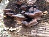 Satrūdējusi kritala mežā, nav dēļi. Iespējams, egle, jauktu koku mežs.