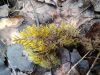 Man pēkšņi radās ideja - vai tur bija nu ļoti mitrs mikroklimats, egle ar melnalksni? Hipotētiski tādas dzeltenas var būt Diachea muscorum. Te bilde ir mazliet līdzīga: https://fr.wikipedia.org/wiki/Fichier:Craterium_muscorum,_Trawscoed,_North_Wales,_Aug_2016_-_Flickr_-_janetgraham84.jpg