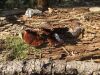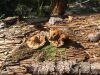 Satrūdējusi kritala mežā, nav dēļi. Iespējams, egle, jauktu koku mežs.