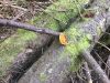 Satrūdējusi kritala mežā, nav dēļi. Iespējams, egle, jauktu koku mežs.