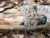 Satrūdējusi kritala mežā, nav dēļi. Iespējams, egle, jauktu koku mežs.