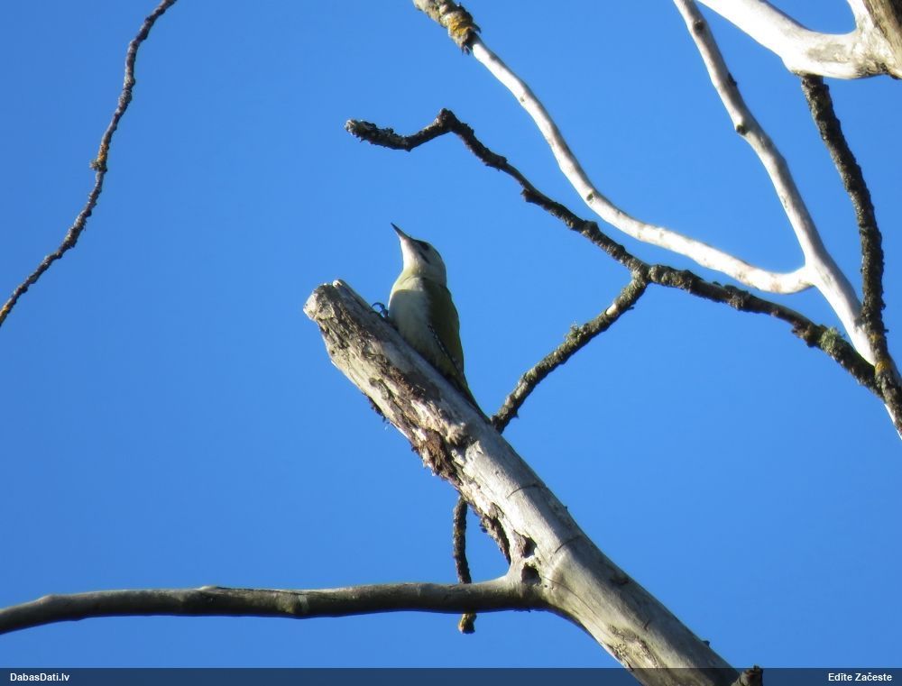 Pēc kā noteicāt, ka zaļā, nevis pelēkā? Zaļā dzilna ir ļoti reta. Zaļā dzilna: http://www.putni.lv/picvir.htm Pelēkā dzilna: http://www.putni.lv/piccan.htm