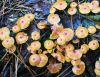 Man pēkšņi radās ideja - vai tur bija nu ļoti mitrs mikroklimats, egle ar melnalksni? Hipotētiski tādas dzeltenas var būt Diachea muscorum. Te bilde ir mazliet līdzīga: https://fr.wikipedia.org/wiki/Fichier:Craterium_muscorum,_Trawscoed,_North_Wales,_Aug_2016_-_Flickr_-_janetgraham84.jpg