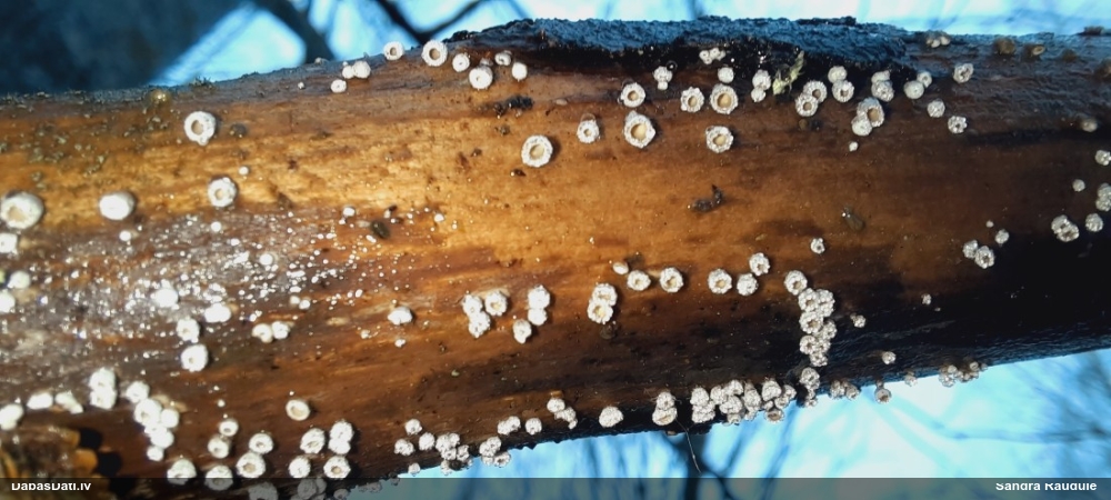 Raivo, nebūs Chaenotheca furfuracea, bet gan C.brachypoda (dabisku mežu indikatorsuga). C.furfuracea ir ar izteiktu laponi, daudz lielāki aķ un košāk zaļa krāsa
