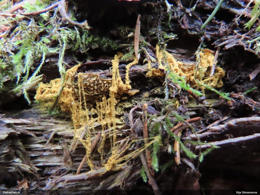 Julitas, šai paņemts paraugs, diezgan izsporojies. Un tai otrai līdzīgajai, kam ieziņots novērojums, arī. Pārliecinājos, ka tiešām egles kritalas. Bet tādu gļotsēņu diezgan daudz, vai uz katras egles kritalas, daudzās vietās stumbram, tagad dzeltenos sporu mākoņus labi redz.