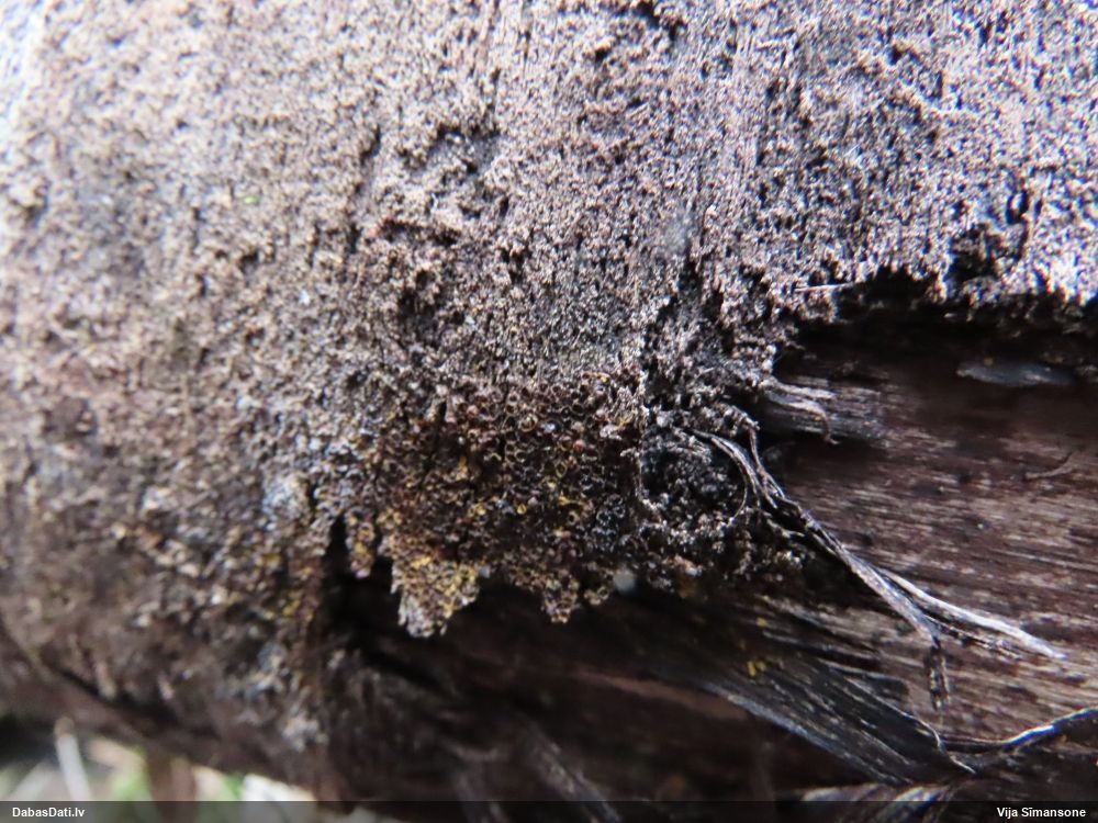 Domāju to Sorocybe resinae, ja tā, tad esmu soli tuvāk mērķim, nu zinu, kā izskatās un kur meklēt. Gļotsēnītes klāt gan nebija.