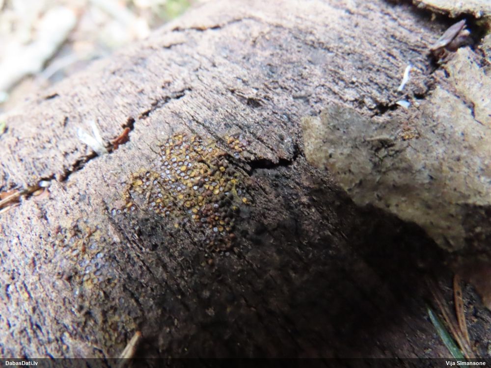 Domāju to Sorocybe resinae, ja tā, tad esmu soli tuvāk mērķim, nu zinu, kā izskatās un kur meklēt. Gļotsēnītes klāt gan nebija.