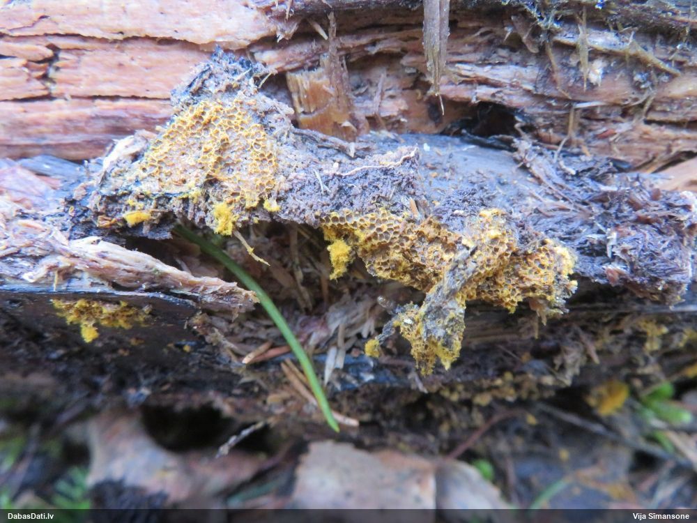 Jā, varbūt zeltmatu Physarum flavicomum