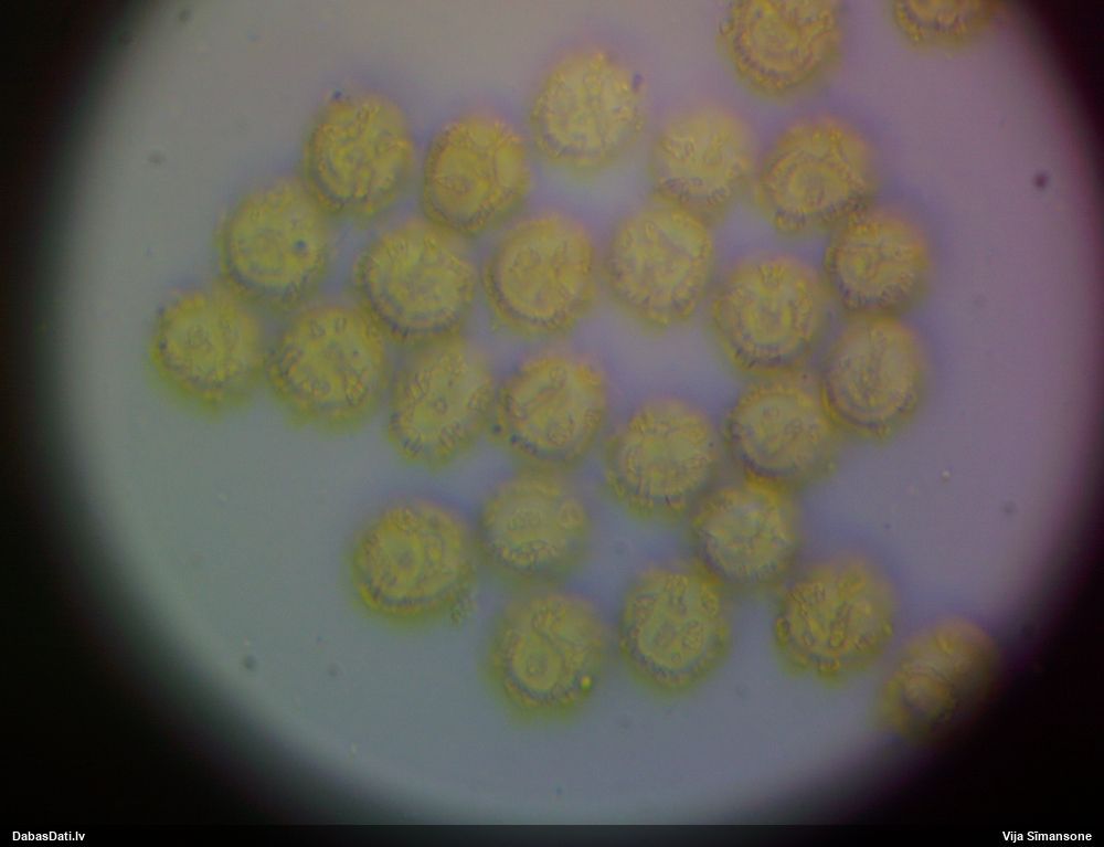Sporas izskatās ļoti gaišas, varbūt nenobriedušas. Es laikam pēc kāda laiciņa mēģinātu vēlreiz mikroskopēt. Tajā pašā laikā sporu izmēri priekš T.contorta ir pamazi (ja tipiski ir 11-14 mkm, te ir knapi 11 mkm)