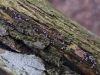 Ja uz beigta koka, tad ticamākā laikam ir B.affinis var. microspora, lai gan tā aug uz mizas. Bet varbūt tieši apakšā gļotsēnēm ir kādi mizas fragmentiņi?