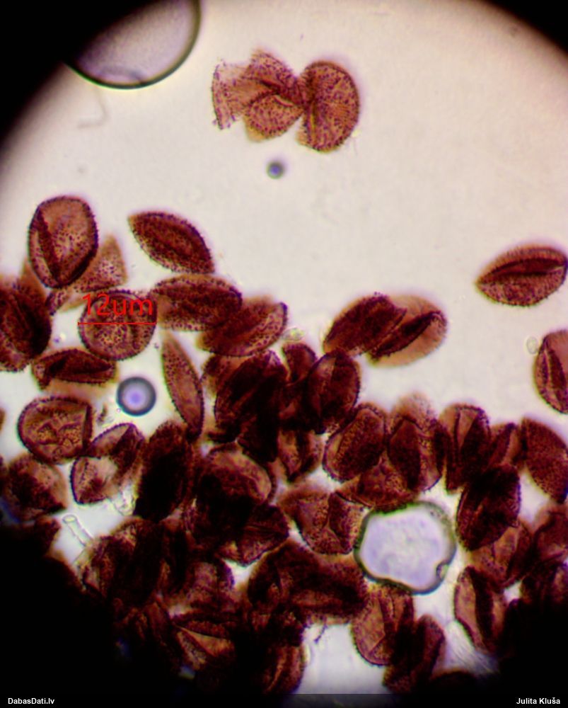 Sporas izskatās ļoti gaišas, varbūt nenobriedušas. Es laikam pēc kāda laiciņa mēģinātu vēlreiz mikroskopēt. Tajā pašā laikā sporu izmēri priekš T.contorta ir pamazi (ja tipiski ir 11-14 mkm, te ir knapi 11 mkm)