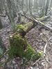 Satrūdējusi kritala mežā, nav dēļi. Iespējams, egle, jauktu koku mežs.