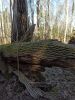 Satrūdējusi kritala mežā, nav dēļi. Iespējams, egle, jauktu koku mežs.