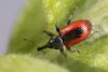 Jāredz tuvāk (kaut vai izkadrēts šis pats attēls) - varbūt tumšā eļļasvabole (Meloe proscarabaeus)