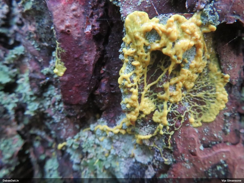 Šobrīd divas versijas - Physarum psittacinum un P.braunianum. Bez paraudziņa te skaidrīzā netiks, bet biotops interesants