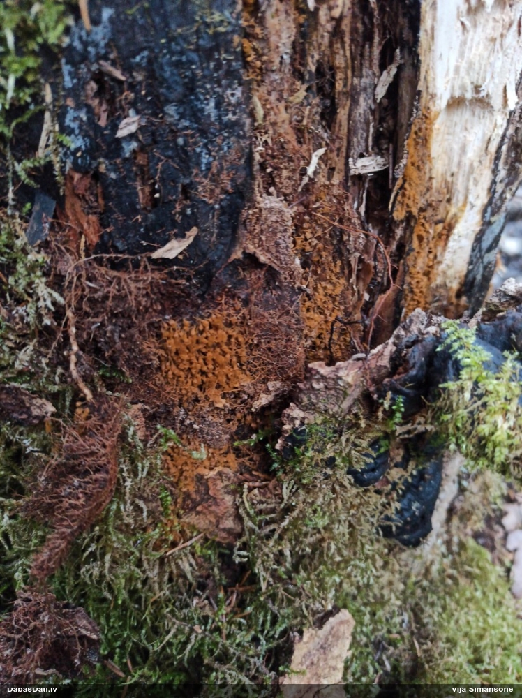 Liels paldies par paraugu! Mikroskopēju, viss kārtībā, kapilīcijs ir un suga pareiza. :) Un kā jau ir gadījies - tikko saņemu un apskatu paraugu, tā uzreiz ekspedīcijā izdodas atrast arī pašai (1 gab. augļķermeni :D). Ir pilnīgi droši, Raivo, bez Tava atraduma es arī nebūtu atradusi, jo uzmanību pievērsu, ka egle bija tieši tāda pati - slīpa un melna, tāpēc īpašs paldies par biotopa un substrāta bildēm! Kad ieraudzīju koka atbilstību, tad meklēju, kamēr atradu. :)