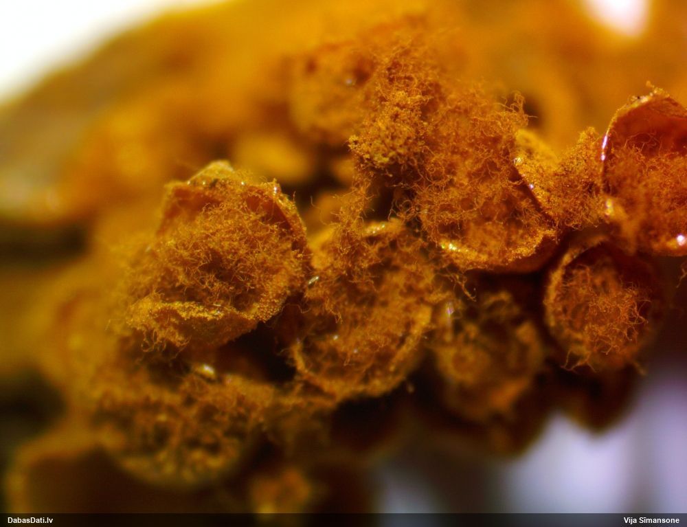 Paldies, Raivo! Ar acu gaišumu man arvien sliktāk, bet mikroskops palīdz. Jā, gribēju teikt, ka paraugam, ja vien nav kāda jutīga atradne, kurai drīkst ievākt tikai mazu gabaliņu, vērts ievākt lielāku gabalu, jo gļotsēnēm patīk kompānija. Un mikroskopa mazajos palielinājumos ar sānu papildus apgaismojumu ir vērts rūpīgi "izstaigāt" visu paraugu. Arī ķērpjus un interesantas sīksēnītes tā var atrast, ko dabā nepamanītu. Ar kriksītēm ir dažādi - pirmās es tā arī tikai citu sugu paraugos pamanīju, bet vēlāk redzēju arī dabā kriskīšu plantācijas - ja to ir daudz, tad var pamanīt jau dabā. Uz sūnām gan ir ekstrēms gadījums, dabā droši nepamanītu, arī eksemplāra noņemšana no sūnas nebija pārāk veiksmīga, tāpēc par noteikšanu mazliet šaubos (sporām mazliet cits tonis). Bet pagaidām citas hipotēzes nav (un konkrētā eksemplāra arī vairs ne).