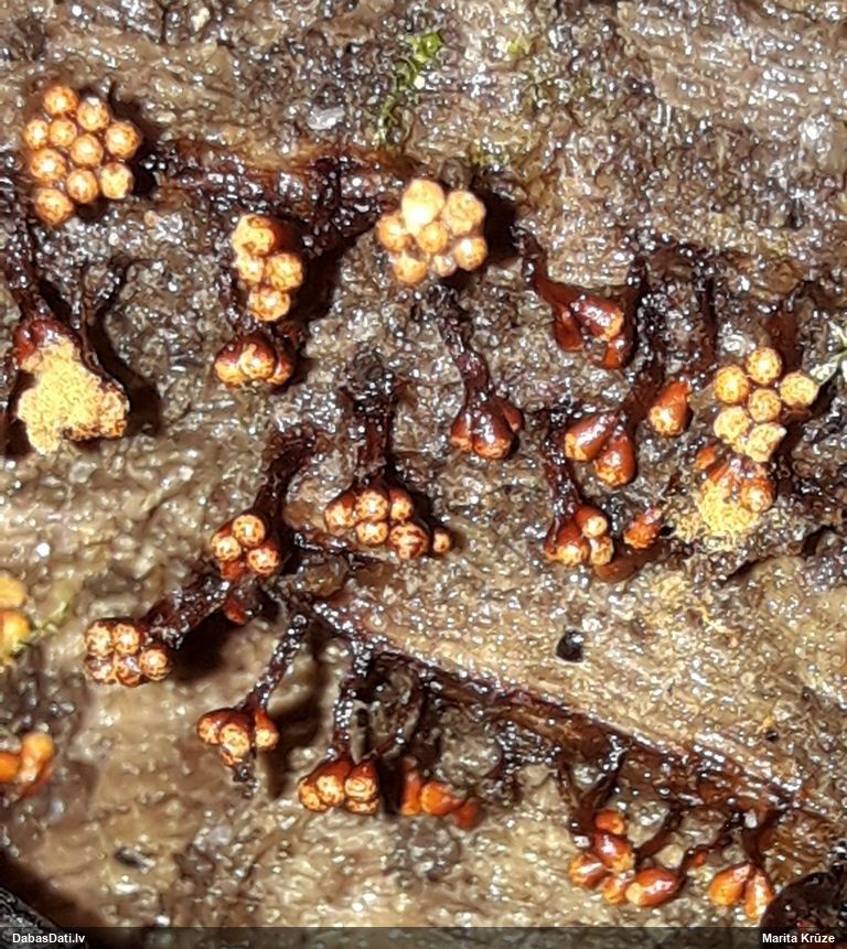 Šis man pašai sanāca pārsteigums. Ievācu paraugu ar domu "varbūt tur ir gļotsēne", dodot varbūtību apmēram pusprocentu, ka ir. Bet no mikroskopijas starp galīgi vecām sporām izdevās atrast ne tikai dažas labas, bet, galvenais, arī perfektus kapilīcija fragmentus, no kura suga, vēl kopā ar sporu pazīmēm, nosakāma nešaubīgi.