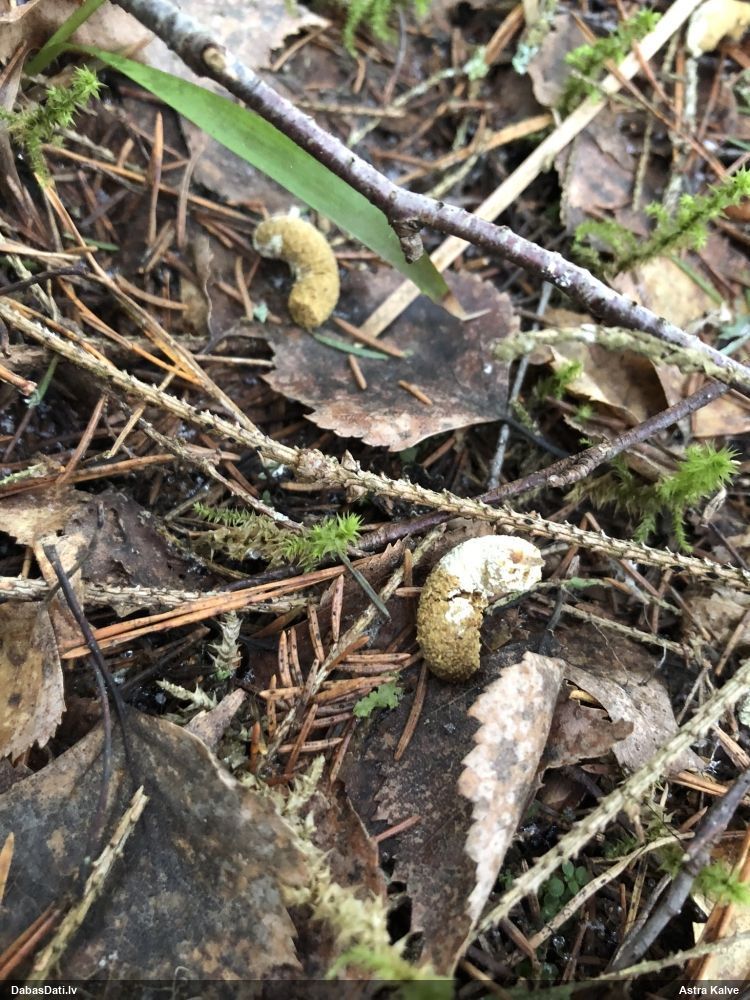 Vai tik nebūs medainā bumbulīte? Augļķermeņi vertikāli izstiepti, sporu mākonis ciešā klājienā.
