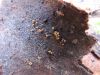 Paldies par paraugu! Paraugā augļķermeņi gan bija ļoti cieti, līdz galam nenobrieduši. Jauna eksemplāra krāsa var būt nozīmīga noteikšanā, bet svarīgi arī nobriedināt (turot mitrākā vietā), citādi perīdiju noņemt mikroskopēšanai ir praktiski neiespējami. Šajā gadījumā mazu gabaliņu izdevās atmiekšķēt un nodabūt, kas sarežģītākos gadījumos varētu būt nepietiekami. Pēc izmēra un perīdija pazīmēm te varētu būt divi varianti L.irregularis un L.epidendrum, kas esot viens no grūtāk atšķiramajiem sugu pāriem. L.epidendrum vairāk raksturīgi, kā es tos saucu, pārstaipi uz augļķermeņa virsmas, kas te ir ļoti labi redzami, tāpēc izšķīros par parastāko sugu.
