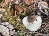 Satrūdējusi kritala mežā, nav dēļi. Iespējams, egle, jauktu koku mežs.