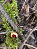 Man pēkšņi radās ideja - vai tur bija nu ļoti mitrs mikroklimats, egle ar melnalksni? Hipotētiski tādas dzeltenas var būt Diachea muscorum. Te bilde ir mazliet līdzīga: https://fr.wikipedia.org/wiki/Fichier:Craterium_muscorum,_Trawscoed,_North_Wales,_Aug_2016_-_Flickr_-_janetgraham84.jpg