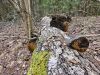 Satrūdējusi kritala mežā, nav dēļi. Iespējams, egle, jauktu koku mežs.