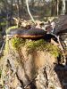 Satrūdējusi kritala mežā, nav dēļi. Iespējams, egle, jauktu koku mežs.