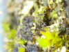 Man pēkšņi radās ideja - vai tur bija nu ļoti mitrs mikroklimats, egle ar melnalksni? Hipotētiski tādas dzeltenas var būt Diachea muscorum. Te bilde ir mazliet līdzīga: https://fr.wikipedia.org/wiki/Fichier:Craterium_muscorum,_Trawscoed,_North_Wales,_Aug_2016_-_Flickr_-_janetgraham84.jpg