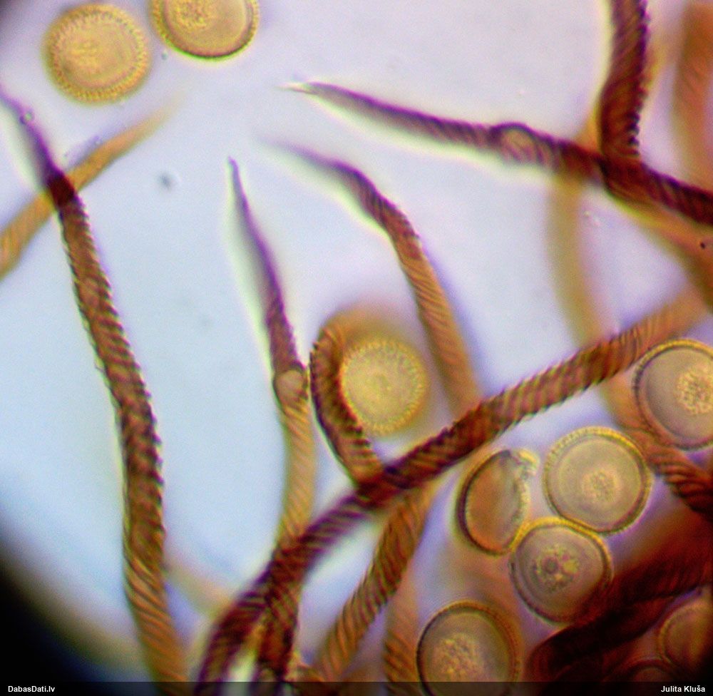 Šis man pašai sanāca pārsteigums. Ievācu paraugu ar domu "varbūt tur ir gļotsēne", dodot varbūtību apmēram pusprocentu, ka ir. Bet no mikroskopijas starp galīgi vecām sporām izdevās atrast ne tikai dažas labas, bet, galvenais, arī perfektus kapilīcija fragmentus, no kura suga, vēl kopā ar sporu pazīmēm, nosakāma nešaubīgi.
