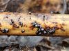 Vai tik nebūs medainā bumbulīte? Augļķermeņi vertikāli izstiepti, sporu mākonis ciešā klājienā.