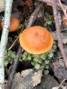 Man pēkšņi radās ideja - vai tur bija nu ļoti mitrs mikroklimats, egle ar melnalksni? Hipotētiski tādas dzeltenas var būt Diachea muscorum. Te bilde ir mazliet līdzīga: https://fr.wikipedia.org/wiki/Fichier:Craterium_muscorum,_Trawscoed,_North_Wales,_Aug_2016_-_Flickr_-_janetgraham84.jpg