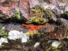 Man pēkšņi radās ideja - vai tur bija nu ļoti mitrs mikroklimats, egle ar melnalksni? Hipotētiski tādas dzeltenas var būt Diachea muscorum. Te bilde ir mazliet līdzīga: https://fr.wikipedia.org/wiki/Fichier:Craterium_muscorum,_Trawscoed,_North_Wales,_Aug_2016_-_Flickr_-_janetgraham84.jpg