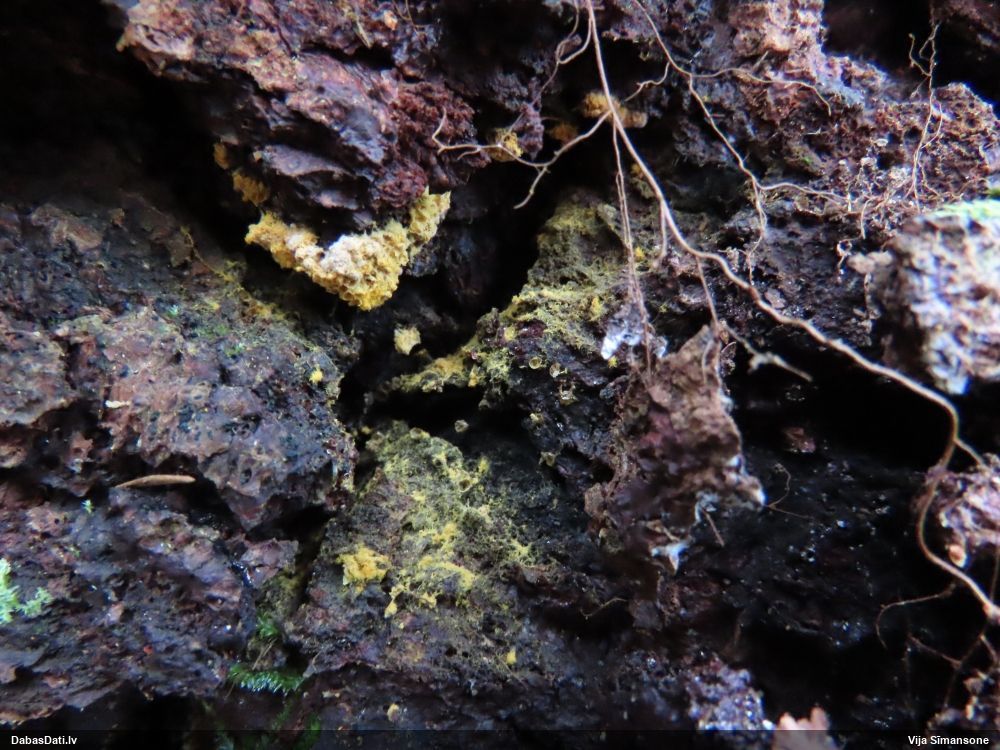 Šobrīd divas versijas - Physarum psittacinum un P.braunianum. Bez paraudziņa te skaidrīzā netiks, bet biotops interesants
