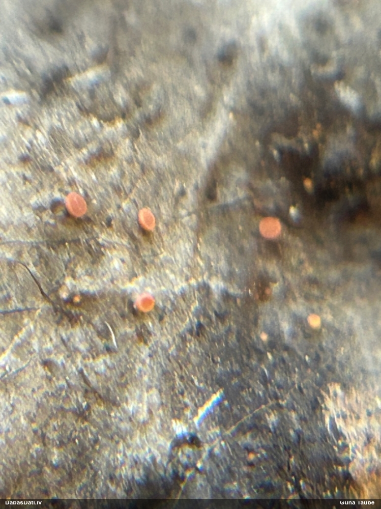 Priekš aurantiaca galīgi neatbilst jaunu augļķermeņu krāsa (kam sākumā jābūt zaļgani dzelteniem). Variants ir C.intricata, bet te mikroskopijā grūti saskatīt brīvo galu skaitu mezglos, tāpēc ātrumā droši noteikt nevaru.