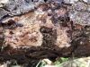 Satrūdējusi kritala mežā, nav dēļi. Iespējams, egle, jauktu koku mežs.
