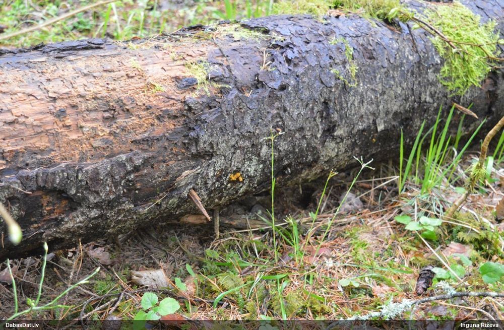 Satrūdējusi kritala mežā, nav dēļi. Iespējams, egle, jauktu koku mežs.