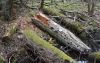 Satrūdējusi kritala mežā, nav dēļi. Iespējams, egle, jauktu koku mežs.