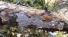 Satrūdējusi kritala mežā, nav dēļi. Iespējams, egle, jauktu koku mežs.