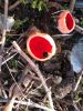 Man pēkšņi radās ideja - vai tur bija nu ļoti mitrs mikroklimats, egle ar melnalksni? Hipotētiski tādas dzeltenas var būt Diachea muscorum. Te bilde ir mazliet līdzīga: https://fr.wikipedia.org/wiki/Fichier:Craterium_muscorum,_Trawscoed,_North_Wales,_Aug_2016_-_Flickr_-_janetgraham84.jpg