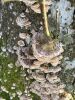 Satrūdējusi kritala mežā, nav dēļi. Iespējams, egle, jauktu koku mežs.