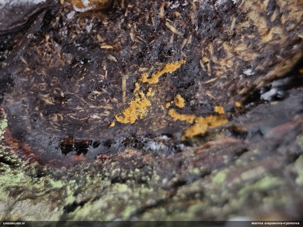 Šis man pašai sanāca pārsteigums. Ievācu paraugu ar domu "varbūt tur ir gļotsēne", dodot varbūtību apmēram pusprocentu, ka ir. Bet no mikroskopijas starp galīgi vecām sporām izdevās atrast ne tikai dažas labas, bet, galvenais, arī perfektus kapilīcija fragmentus, no kura suga, vēl kopā ar sporu pazīmēm, nosakāma nešaubīgi.