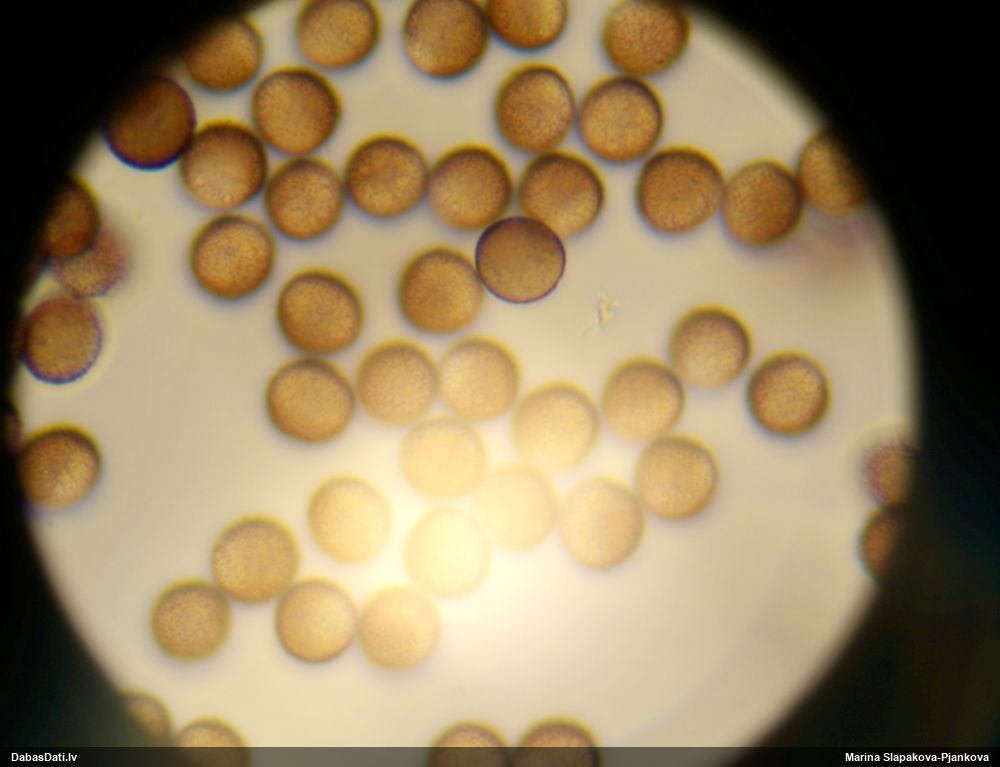 Sporas izskatās ļoti gaišas, varbūt nenobriedušas. Es laikam pēc kāda laiciņa mēģinātu vēlreiz mikroskopēt. Tajā pašā laikā sporu izmēri priekš T.contorta ir pamazi (ja tipiski ir 11-14 mkm, te ir knapi 11 mkm)