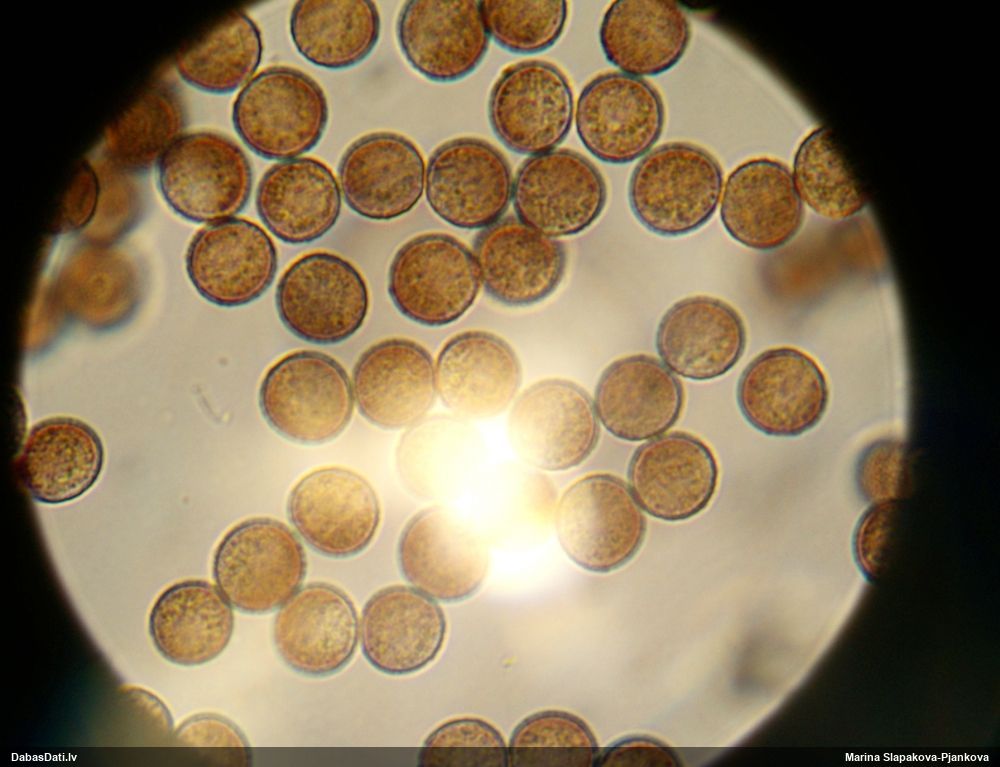 Sporas izskatās ļoti gaišas, varbūt nenobriedušas. Es laikam pēc kāda laiciņa mēģinātu vēlreiz mikroskopēt. Tajā pašā laikā sporu izmēri priekš T.contorta ir pamazi (ja tipiski ir 11-14 mkm, te ir knapi 11 mkm)