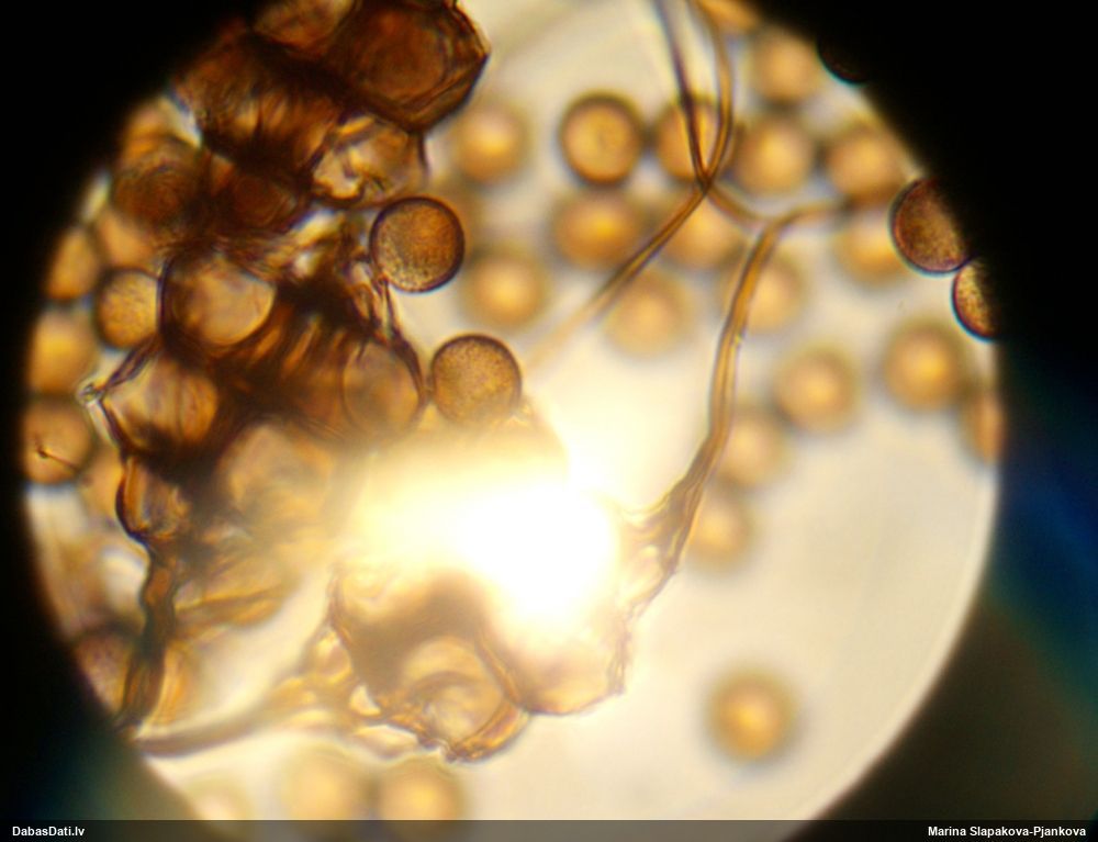 Sporas izskatās ļoti gaišas, varbūt nenobriedušas. Es laikam pēc kāda laiciņa mēģinātu vēlreiz mikroskopēt. Tajā pašā laikā sporu izmēri priekš T.contorta ir pamazi (ja tipiski ir 11-14 mkm, te ir knapi 11 mkm)
