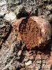 Ja uz beigta koka, tad ticamākā laikam ir B.affinis var. microspora, lai gan tā aug uz mizas. Bet varbūt tieši apakšā gļotsēnēm ir kādi mizas fragmentiņi?