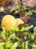 Man pēkšņi radās ideja - vai tur bija nu ļoti mitrs mikroklimats, egle ar melnalksni? Hipotētiski tādas dzeltenas var būt Diachea muscorum. Te bilde ir mazliet līdzīga: https://fr.wikipedia.org/wiki/Fichier:Craterium_muscorum,_Trawscoed,_North_Wales,_Aug_2016_-_Flickr_-_janetgraham84.jpg