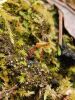 Man pēkšņi radās ideja - vai tur bija nu ļoti mitrs mikroklimats, egle ar melnalksni? Hipotētiski tādas dzeltenas var būt Diachea muscorum. Te bilde ir mazliet līdzīga: https://fr.wikipedia.org/wiki/Fichier:Craterium_muscorum,_Trawscoed,_North_Wales,_Aug_2016_-_Flickr_-_janetgraham84.jpg