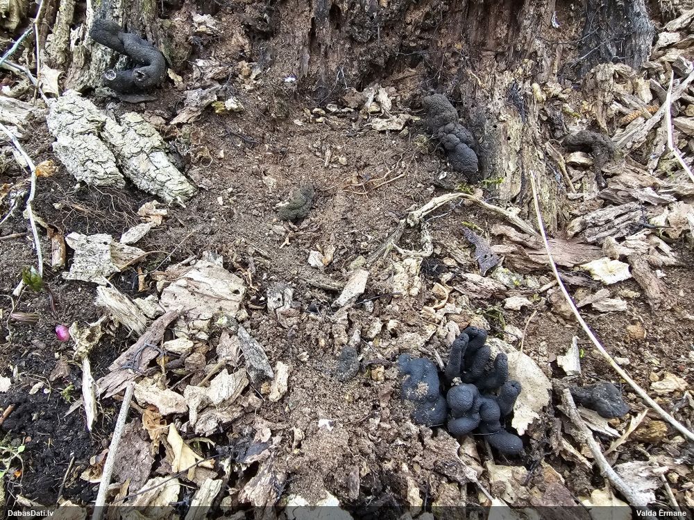 Vai tik nebūs medainā bumbulīte? Augļķermeņi vertikāli izstiepti, sporu mākonis ciešā klājienā.